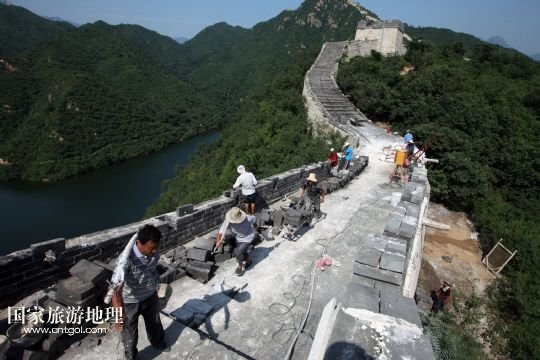 國(guó)家旅游地理 北京8月5日訊 8月4日下午,施工人員在北京懷柔西水峪古長(zhǎng)城進(jìn)行修繕。西水峪古長(zhǎng)城始建于明代,此次修繕部分總長(zhǎng)960米,在嚴(yán)格保障結(jié)構(gòu)安全以及原有風(fēng)貌的前提下進(jìn)行恢復(fù)性修繕,修繕后將達(dá)到對(duì)游客開(kāi)放攀登的標(biāo)準(zhǔn)。預(yù)計(jì)修繕工程將于今年10月底完成,屆時(shí)經(jīng)過(guò)專(zhuān)業(yè)部門(mén)驗(yàn)收后有望對(duì)外開(kāi)放。 /新華社發(fā)(卜向東 攝)