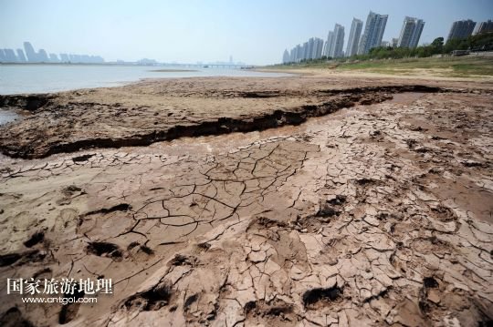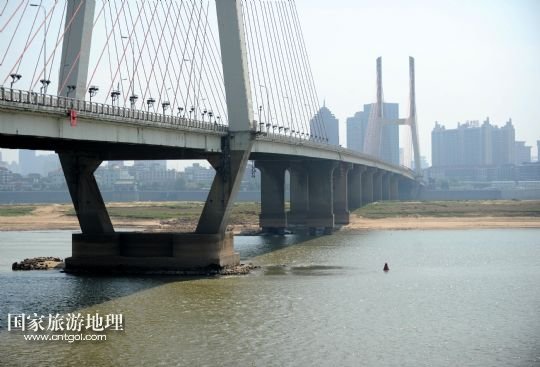 9月20日,因水位下降,贛江南昌段江中心出現(xiàn)大面積裸露的沙洲。