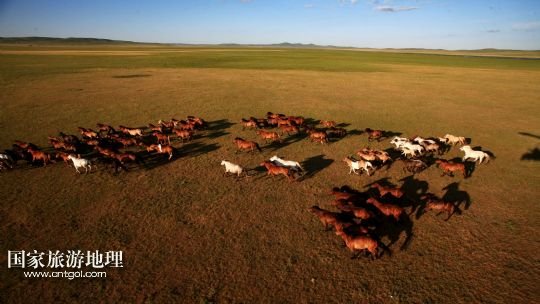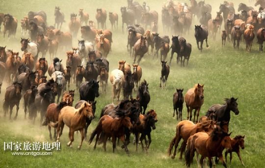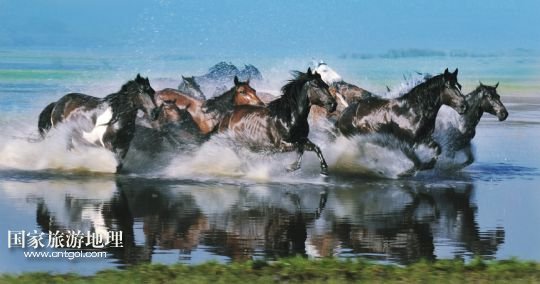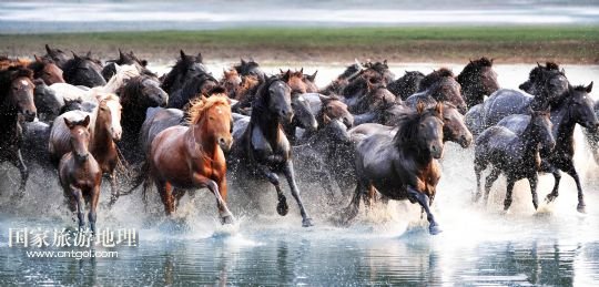 國家旅游地理 1月30日訊 一群蒙古馬在內(nèi)蒙古錫林郭勒盟阿巴嘎旗涉水奔馳(2013年7月20日攝)。風(fēng)從草原吹過,留下多少傳說。在內(nèi)蒙古草原,駿馬與人為伴,縱橫馳騁,一直和諧相處到今天。在漫長的歷史長河中,駿馬陪伴著人們走過了滄桑歲月,留下了許多可歌可泣的動人傳說。