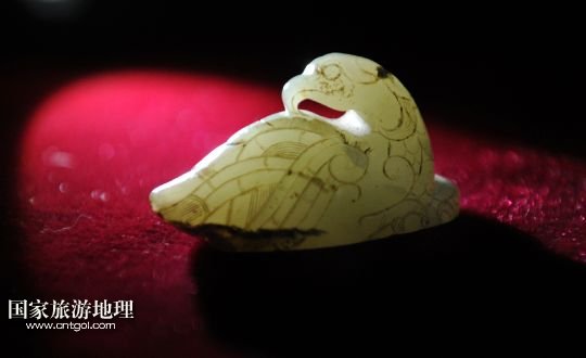 這是龍崗寺遺址出土的國家一級文物——漢代玉鷹(3月27日攝)。