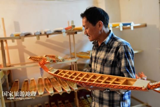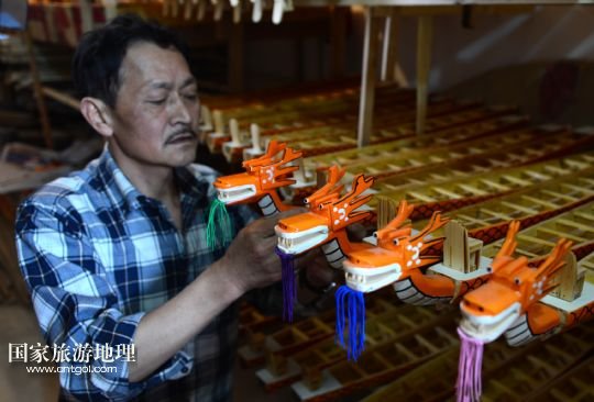 國家旅游地理 湖北宜昌5月15人訊 5月15日,手工藝人鄭祥龍在為微型龍舟上龍頭。端午節(jié)臨近,屈原故里湖北省秭歸縣歸州鎮(zhèn)手工藝人鄭祥龍精心制作一條條微型木制龍舟,準(zhǔn)備在端午文化節(jié)期間向中外游客進(jìn)行展示。