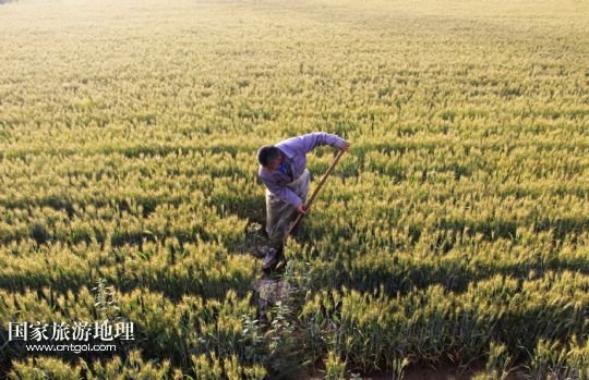 5月20日,河南省安陽市內(nèi)黃縣城關鎮(zhèn)農(nóng)民在麥田里勞作。