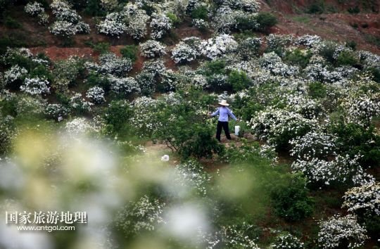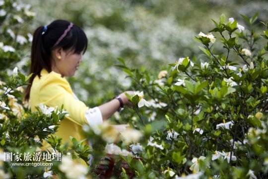 國家旅游地理 江西九江5月24日訊 5月24日,游客在黃梔子種植基地采摘梔子花。小滿時節(jié),在位于鄱陽湖畔的江西省九江市都昌縣土塘鎮(zhèn)潭湖村的坡嶺上,春輝黃梔子專業(yè)合作社6個種植基地的兩千多畝黃梔子全面進入盛花期,種植園內(nèi)芳香四溢。黃梔子是傳統(tǒng)中藥材,花朵可觀賞、食用,果實可用于醫(yī)藥、染色、化妝品等領(lǐng)域。成立于2007年的都昌春輝黃梔子農(nóng)民專業(yè)合作社近年來致力于實施科技推廣、標(biāo)準(zhǔn)化種植和專業(yè)化經(jīng)營黃梔子,將黃梔子從“飄香”經(jīng)濟延伸到“染色”“藥用”深加工,進軍省內(nèi)外市場。 /新華社發(fā)(傅建斌 攝)