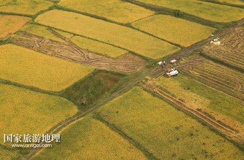 鳥瞰江蘇盱眙金色秋收大地美景(圖)