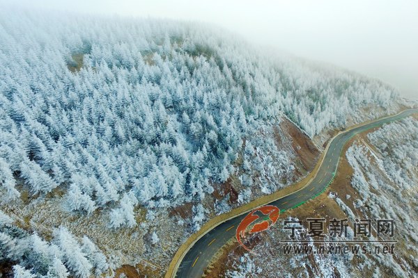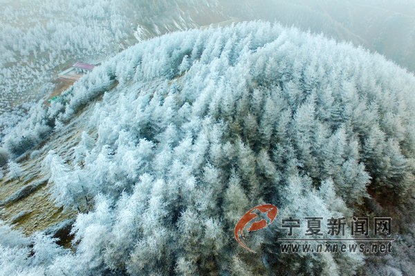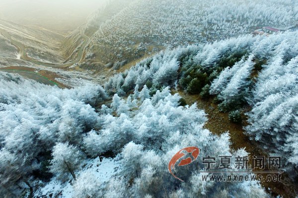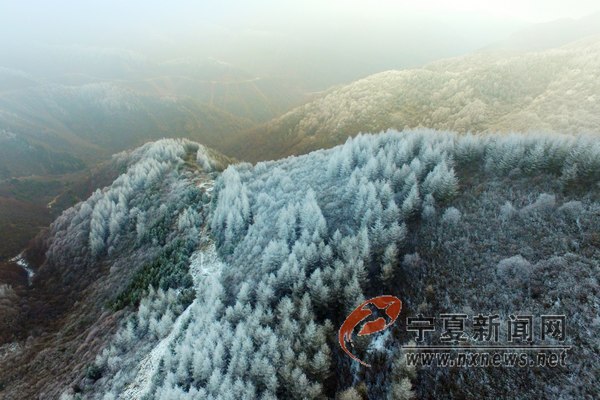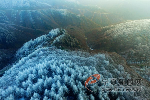 12月8日16時許,寧夏固原是六盤山隆德縣與涇源縣交界處突現(xiàn)霧凇,美麗的霧凇將山川樹木點綴的晶瑩剔透。 寧夏新聞網(wǎng)記者 祁瀛濤 攝